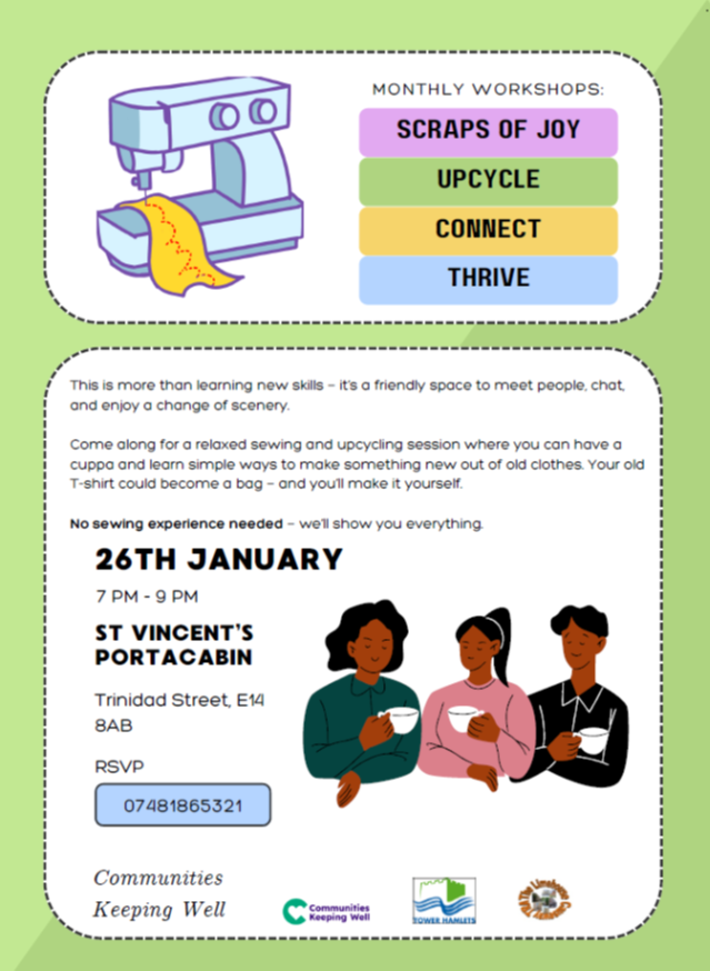 The session is open to Women, Men and Carers living in Tower Hamlets. Community languages spoken and light refreshments will be provided.
